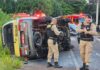 O sinistro ocorreu por volta da 01h20, na Praça Santos Dumont, quando o motorista tentava fazer o contorno para seguir pela Avenida Brasil.