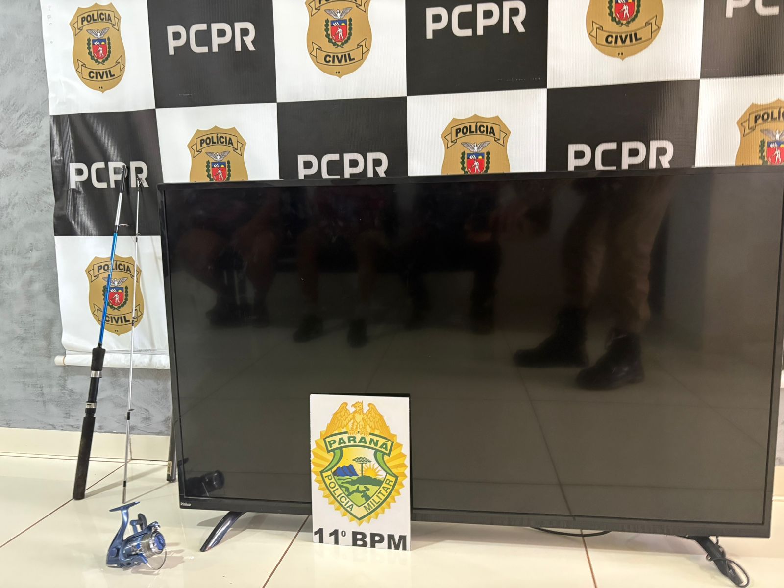 De acordo com as informações repassadas pela PM, foram furtados do local uma televisão Smart TV Philco de 53 polegadas, e dois molinetes de pesca sem marca aparente.