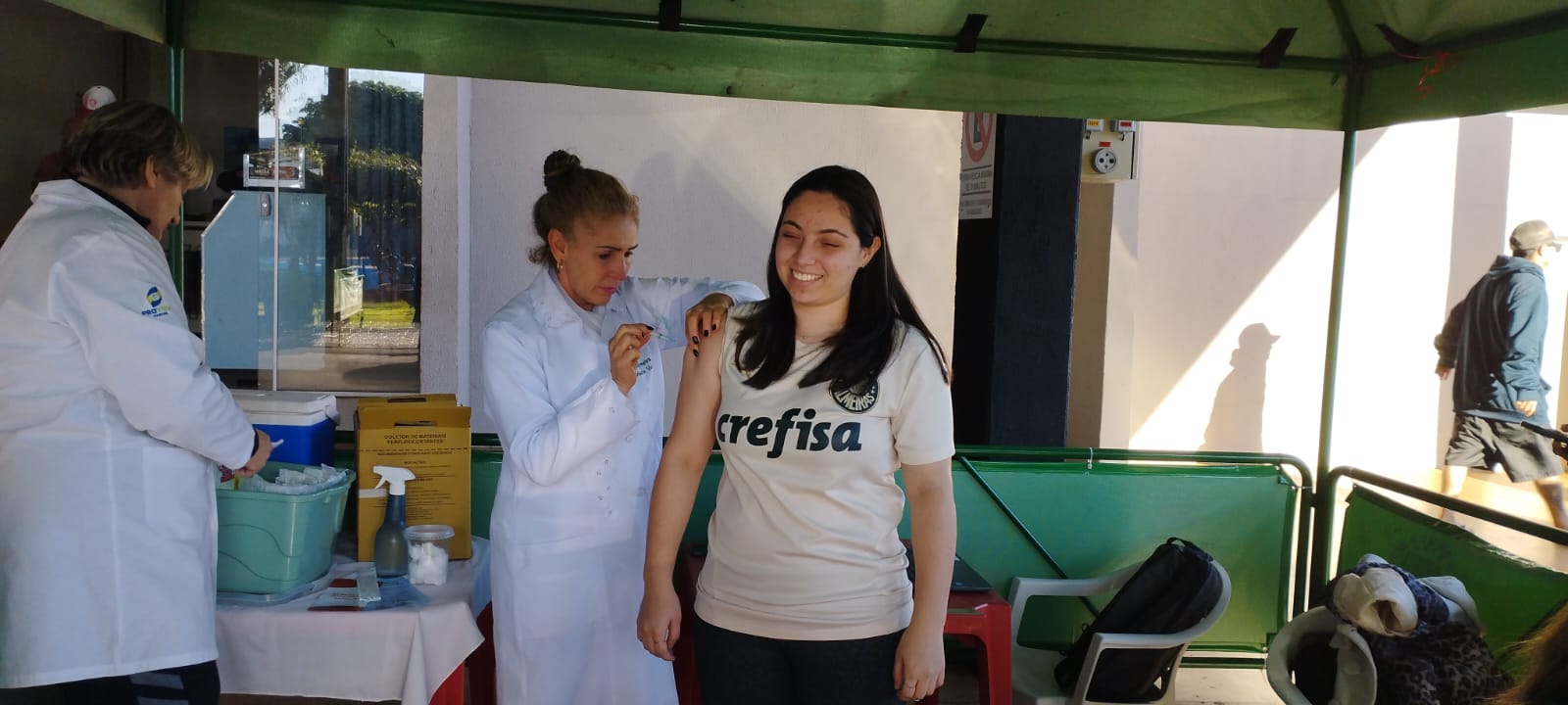 Na tarde de ontem uma equipe da Saúde montou um posto de vacinação no Pavilhão da Feira Mista do Produtor, ao lado da estação rodoviária. Muita gente aproveitou a oportunidade para receber a vacina contra a gripe, esgotando as doses disponíveis no local.