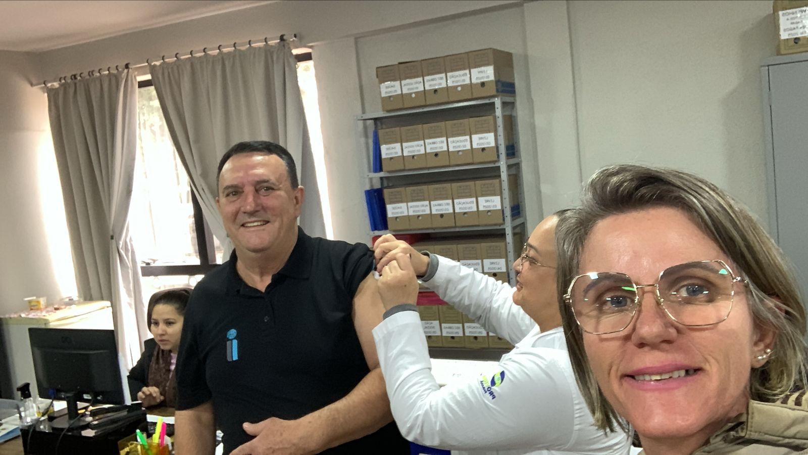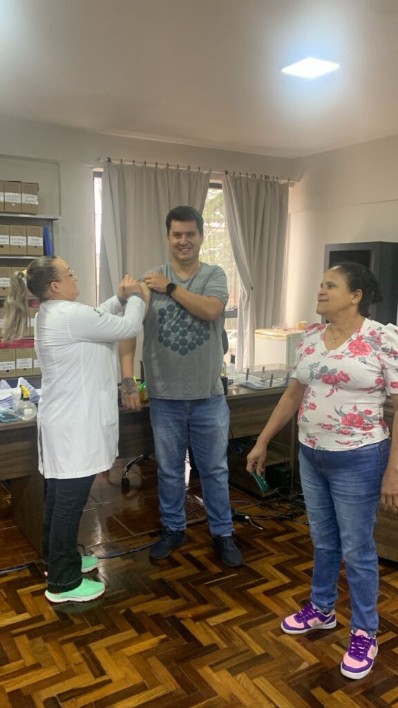 Nesta quinta-feira, 26, a vacina contra a gripe foi levada até o Paço Municipal, para a imunização dos servidores que trabalham no local. Ainda durante esta semana a equipe da Saúde estará visitando pontos comerciais e o Fórum.