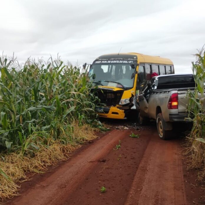 Uma colisão envolvendo um ônibus do transporte escolar da Prefeitura de Quinta do Sol e uma caminhonete foi registrado no início da tarde desta terça-feira, em uma estrada rural do município.