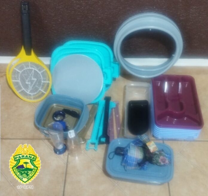 Segundo a vítima, dois indivíduos arrombaram a porta do depósito de sua loja e furtaram utensílios da Tupperware. Os policiais receberam fotos dos suspeitos e logo em seguida fizeram a abordagem.