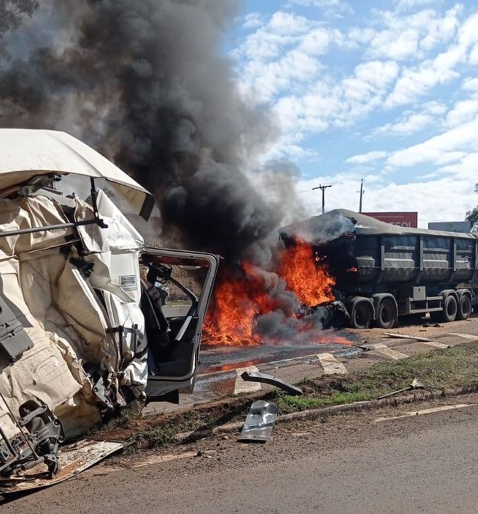 O fogo iniciou após a carreta bater na traseira de outro caminhão no momento em que o motorista da frente desacelerou para passar por uma lombada. Ambos seguiam no sentido de Campo Mourão a Guarapuava.