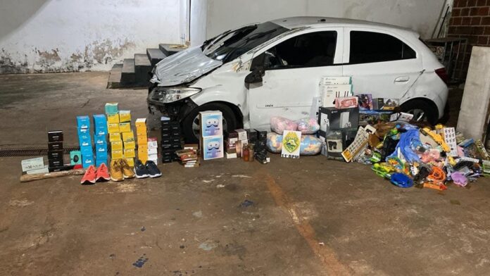 Os policiais fizeram a abordagem e, no interior do carro, foram encontrados diversos objetos roubados dos passageiros do ônibus. As vítimas relataram que o coletivo foi interceptado por um veículo com aproximadamente quatro indivíduos armados e encapuzados, que anunciaram o roubo e levaram pertences e mercadorias antes de fugirem por uma área rural.