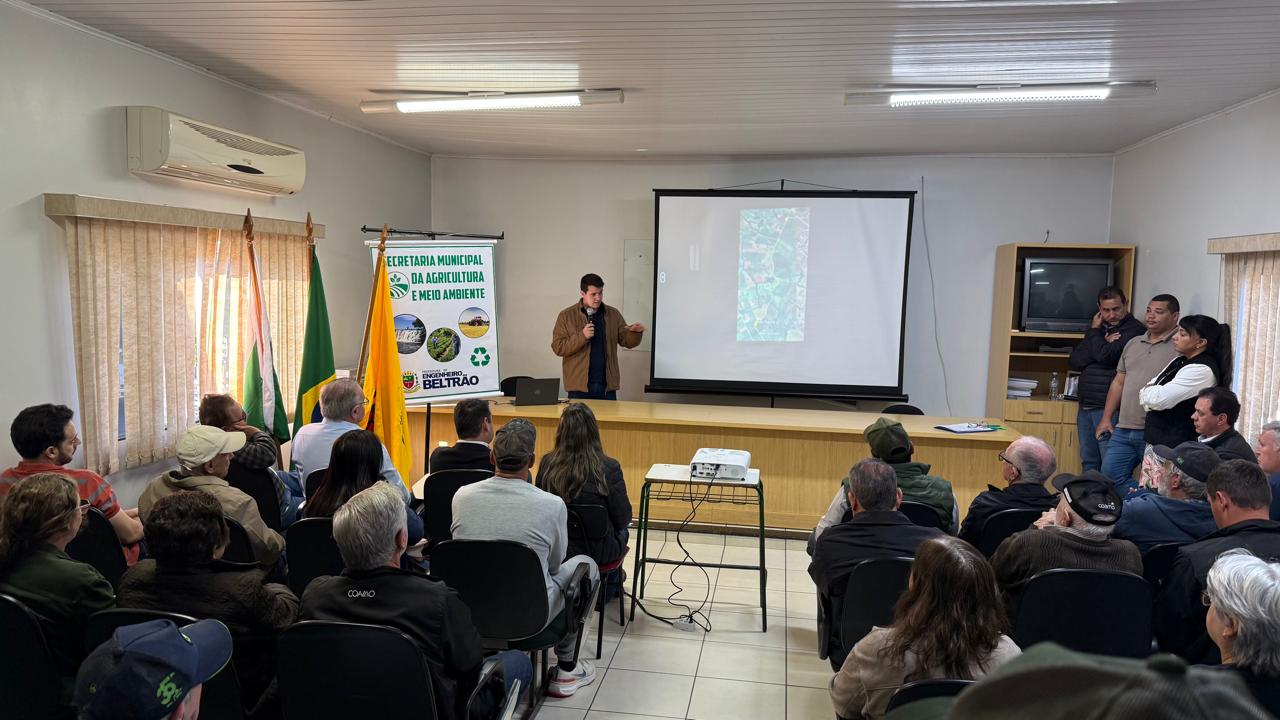 Na manhã desta quinta-feira (14), o Sindicato Patronal Rural de Engenheiro Beltrão ficou completamente lotado durante uma audiência pública para debater o projeto de asfaltamento em trechos da zona rural do município.