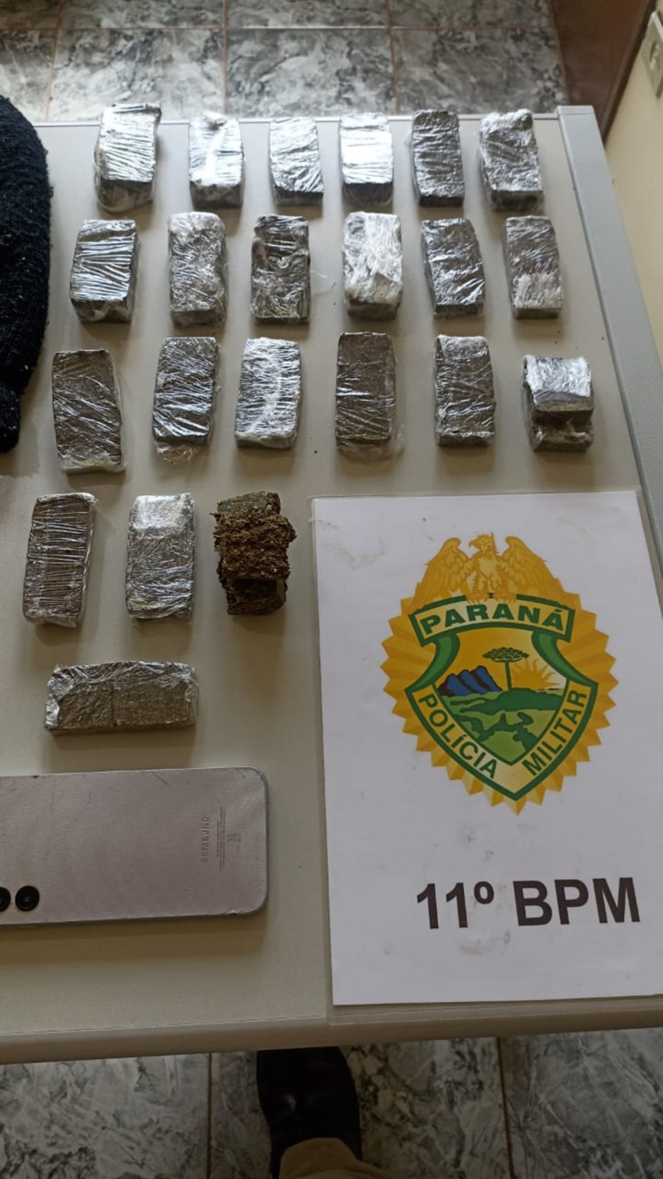 O rapaz ainda resistiu à prisão, sendo necessário o uso de bastão retrátil para contê-lo. Nas buscas na residência foram encontradas 22 porções de maconha, totalizando 826 gramas, além de duas máscaras balaclava e um celular Samsung.