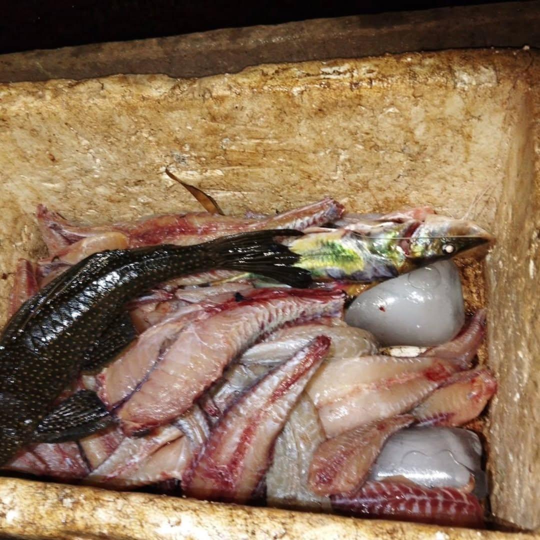 Na embarcação de madeira usada por eles, os policiais encontraram uma caixa de isopor com gelo, contendo diversos peixes da espécie cascudo já em posta, um exemplar de mandi eviscerado e outro cascudo ainda sem limpar.