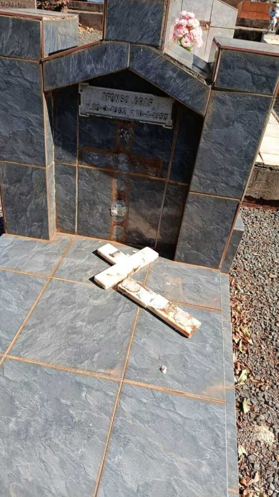 O cemitério do distrito de Sussuí, em Engenheiro Beltrão, foi alvo de vandalismo e furto. A situação foi descoberta nesta quinta-feira, 11, por pessoas que chegaram ao local e se depararam com diversos jazigos danificados.