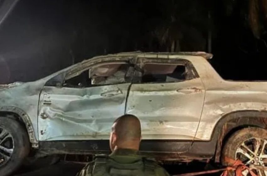 O veículo Fiat Toro em que os quatro cobradores de uma dívida foram vistos pela última vez na região de Umuarama, foi encontrado enterrado nesta sexta-feira, 12, em uma mata, no município de Icaraíma.