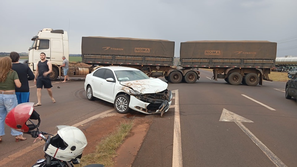 De acordo com as informações apuradas no local o motorista do bitrem tentava fazer o contorno, atravessando a rodovia, em frente ao Posto Corujão, quando foi atingido na lateral pelo automóvel.