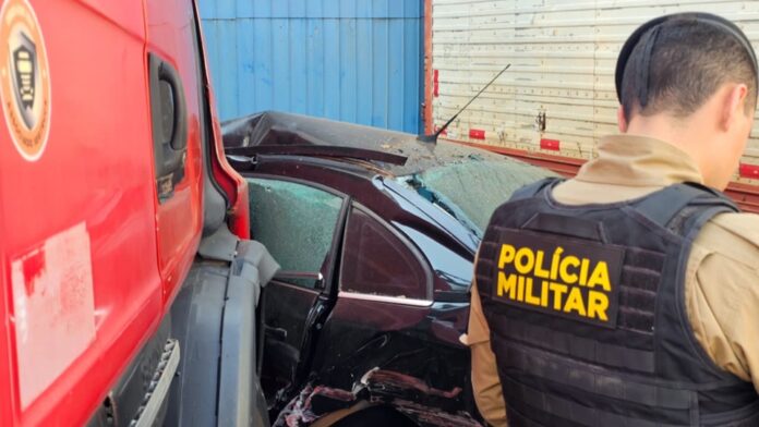 Um veículo Citroën C4 Palace foi esmagado por uma carreta desgovernada na tarde de ontem, na Perimetral Tancredo Neves, em Campo Mourão. O veículo estava estacionado em frente a uma distribuidora quando foi atingido pela carreta.