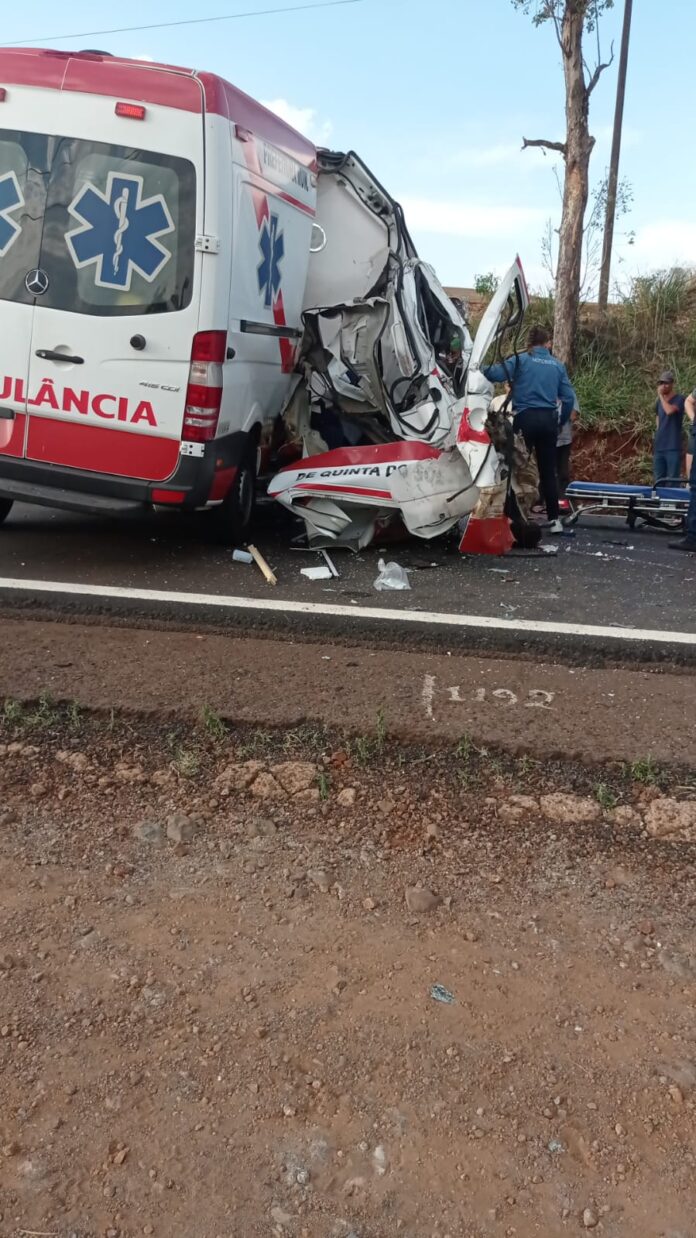 Um trágico acidente envolvendo uma ambulância do município de Quinta do Sol e um caminhão-baú causou a morte de pelo menos uma mulher, e deixou feridos. O acidente ocorreu agora há pouco na rodovia PR-082, entre Quinta do Sol e Engenheiro Beltrão.