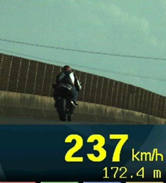No último sábado (11), a Polícia Rodoviária Federal (PRF) flagrou uma motocicleta trafegando a 237 km/h na BR-369, em Corbélia. O registro foi feito durante uma fiscalização de velocidade realizada pelos policiais rodoviários federais no trecho.