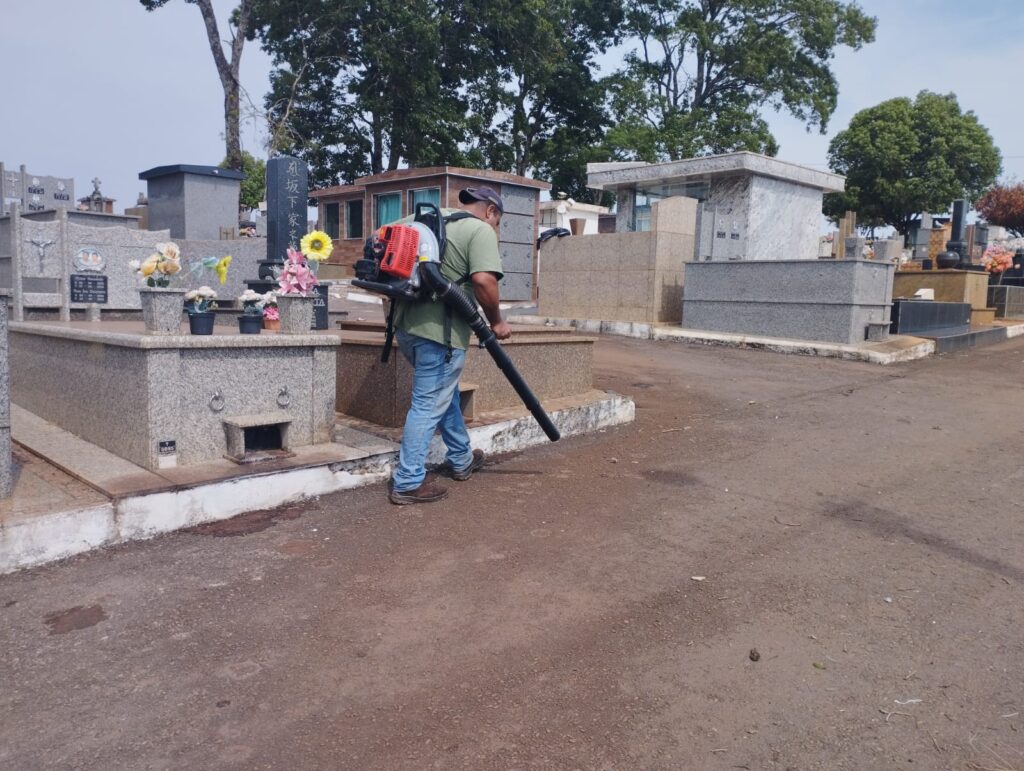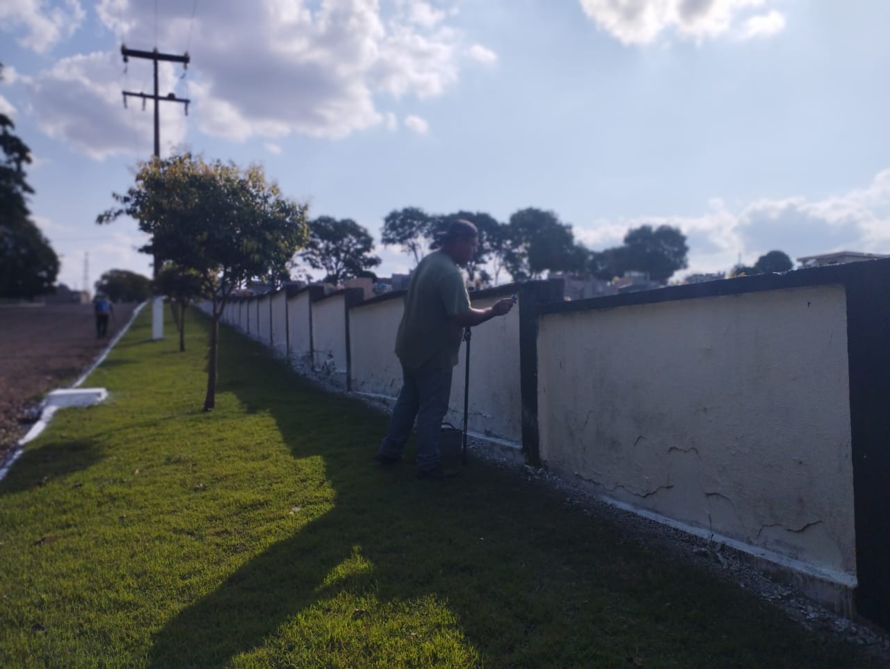 Equipes da Secretaria Municipal de Obras e Urbanismo realizam pintura do muro e recolhem entulhos como vasos velhos e quebrados, bem como, flores entre outros detritos. Também tem sido feita a varrição facilitando o trabalho das pessoas que estão realizando serviços no cemitério visando Finados.