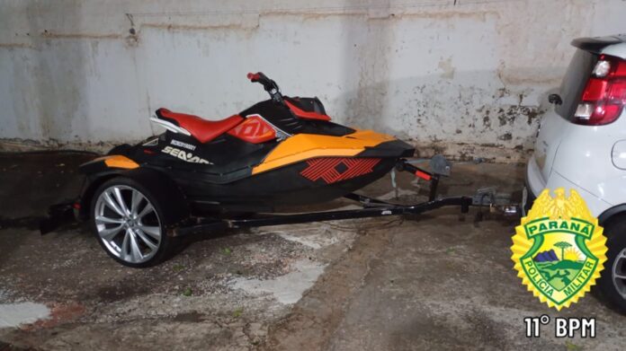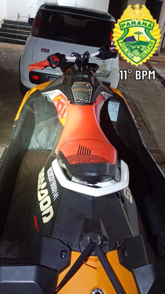 Policiais da RPA do 11º Batalhão de Polícia Militar, realizavam patrulhamento preventivo e ostensivo na região de Ivailândia, às margens da rodovia PR-317, quando avistaram um veículo em alta velocidade transportando uma embarcação tipo moto-aquática (Jet Ski) em uma carretinha sem emplacamento.