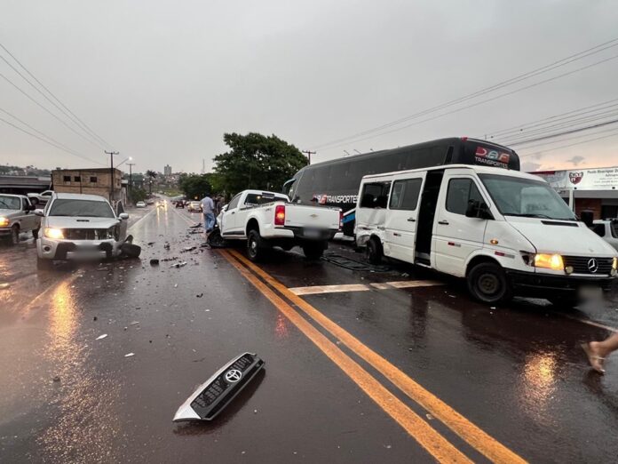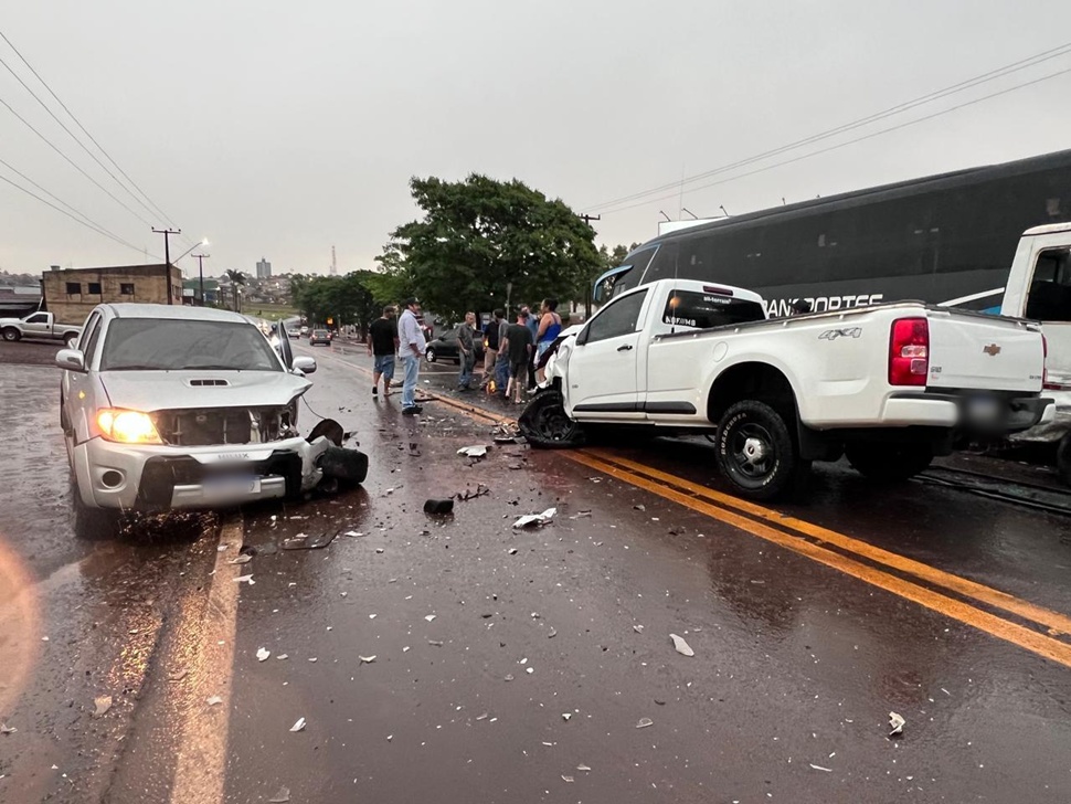 A colisão envolveu uma van, uma caminhonete S10 e uma caminhonete Hilux. Apesar da gravidade do acidente, os danos foram apenas materiais, sem registro de feridos.