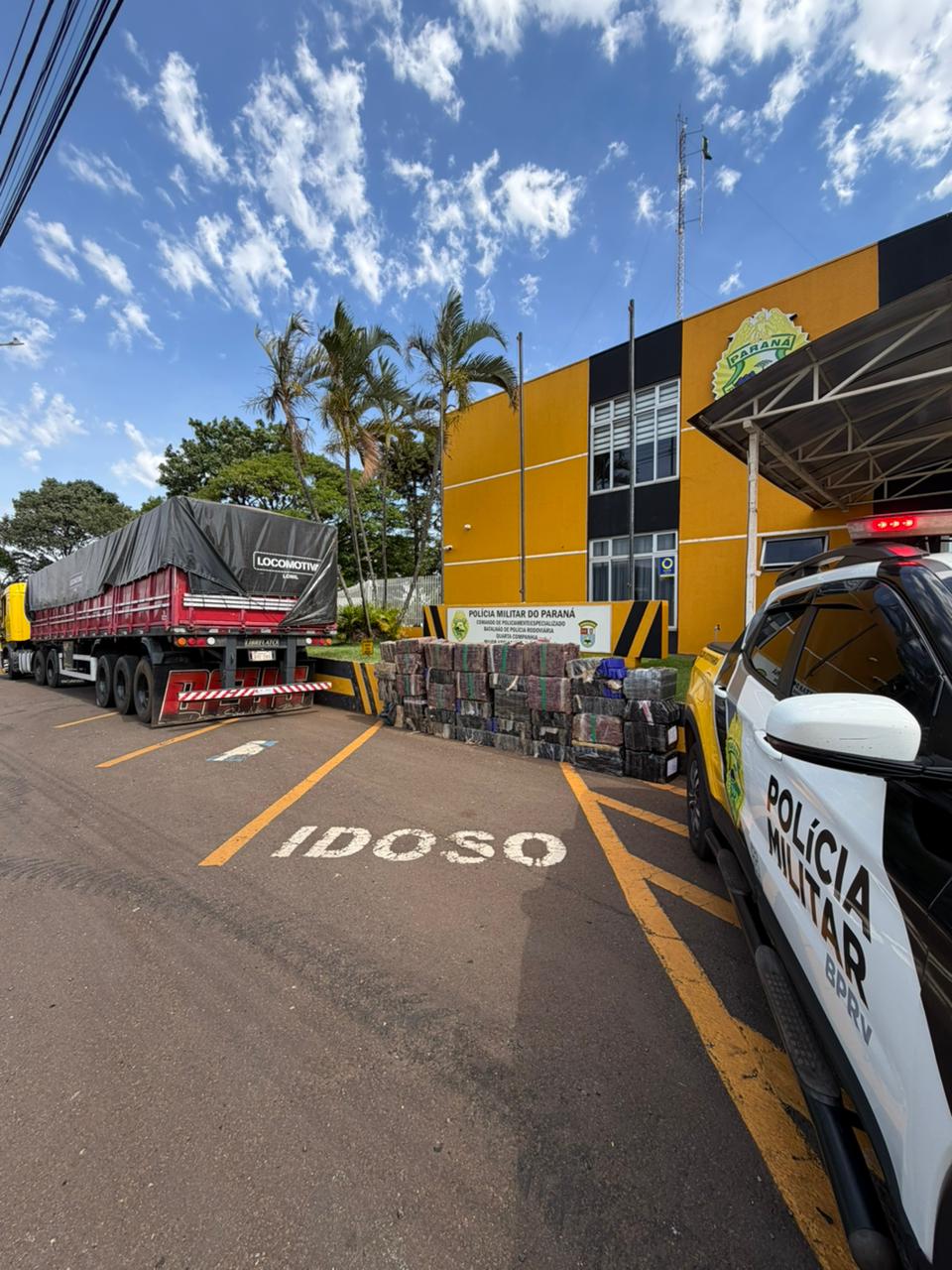 Um caminhão Scania R124 420, acoplado a um semirreboque, foi apreendido com mais de uma tonelada de maconha por volta das 19h30 desse sábado, 25, em frente ao Posto Rodoviário de Peabiru, na PR-317.