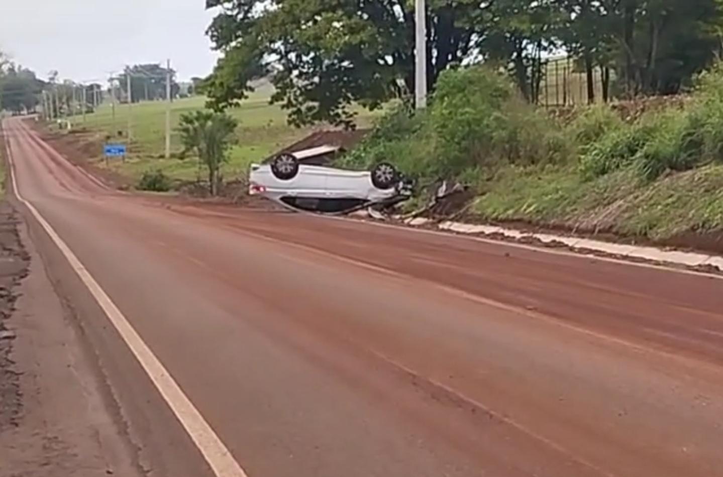 A motorista do automóvel perdeu o controle da direção e o carro capotou ficando com as rodas para cima. O comandante do Destacamento da Polícia Militar de Engenheiro Beltrão, sargento Edwin Sontag, passou pelo local logo após o acidente e auxiliou no resgate.
