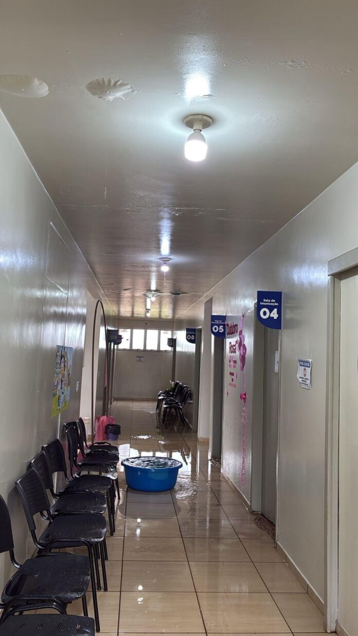 O vendaval causou alagamento no prédio municipal, molhando equipamentos e documentos. Também houve infiltração nas unidades de saúde, afetando as farmácias das UBSs e os medicamentos.