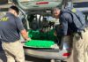 Durante a vistoria no interior do automóvel, a equipe da PRF encontrou 164,255 kg de maconha. A droga foi encaminhada para a delegacia de Polícia Civil da cidade. A equipe fez buscas, mas não localizou o motorista.