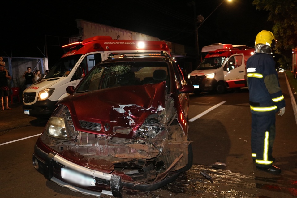 O acidente ocorreu na noite deste domingo na Avenida John Kennedy, região do Lar Paraná, e deixou três pessoas feridas. As vítimas estavam no outro automóvel envolvido no acidente, um Renault Scenic.