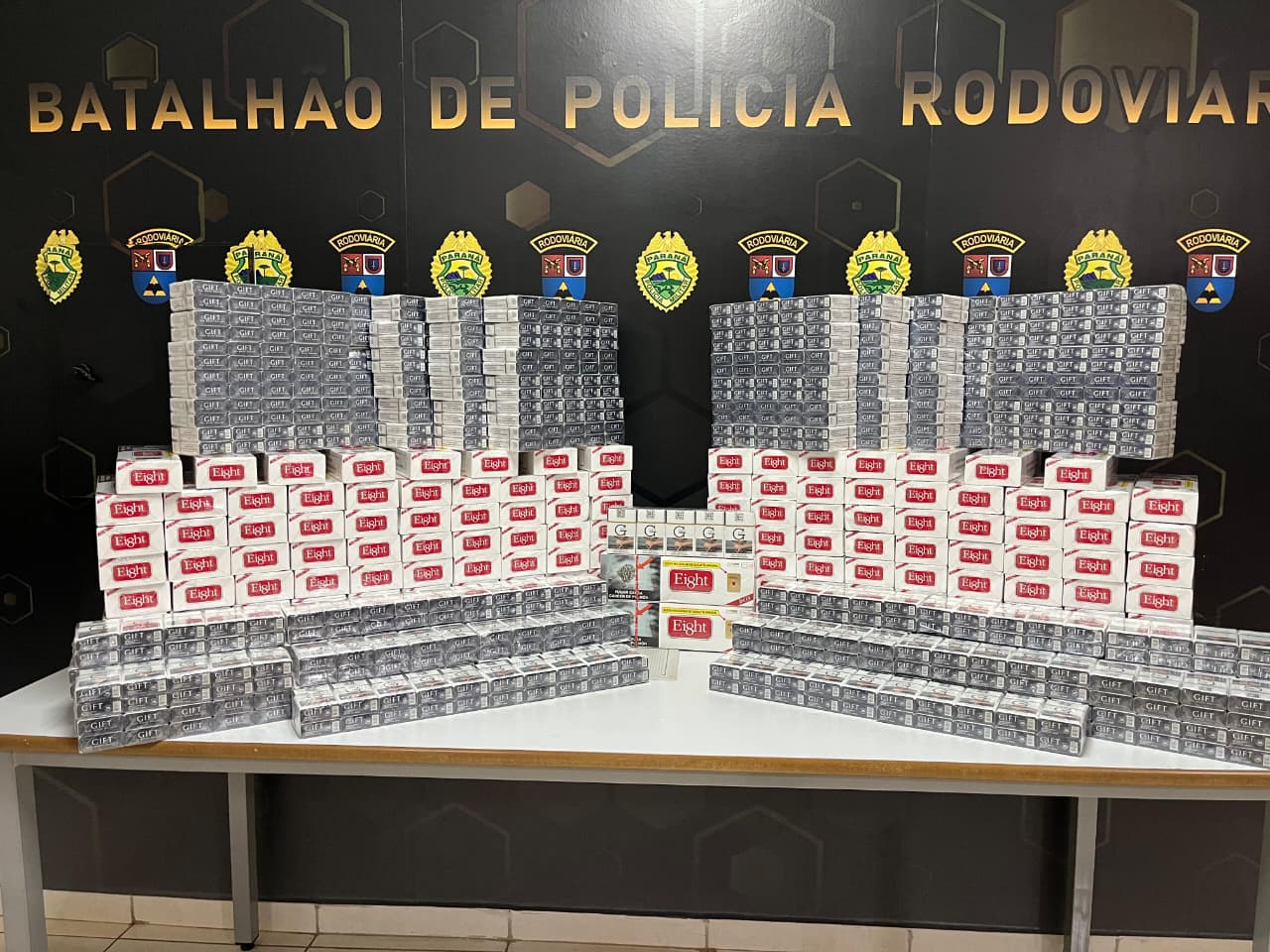 A Polícia Rodoviária Estadual de Floresta apreendeu cinco caixas com grande quantidade de cigarros contrabandeados do Paraguai ao abordar um ônibus, em frente ao posto rodoviário, na PR-317.