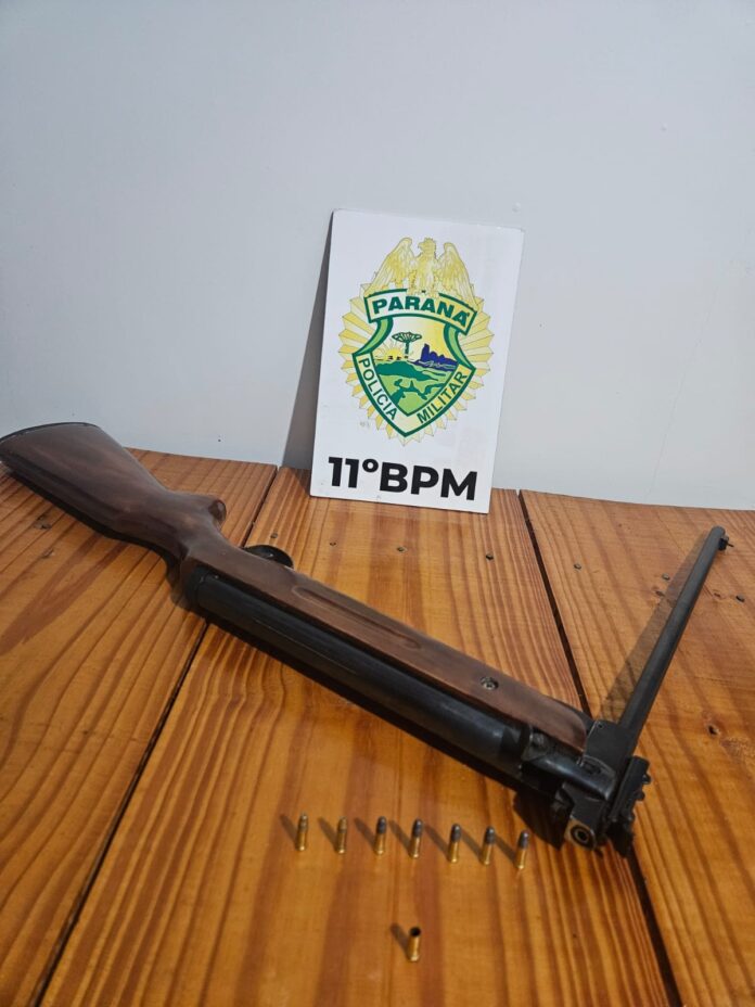 Um homem de 47 anos foi preso por volta das 21h30 de ontem, no jardim Ilha Bela, em Barbosa Ferraz, por porte ilegal de arma. Na casa dele a Polícia Militar apreendeu uma espingarda de pressão modificada para calibre .22, contendo uma munição intacta na câmara.