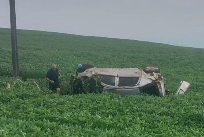 Um veículo foi encontrado capotado em meio a uma área de plantação de soja, às margens da rodovia PR-082, entre os municípios de Engenheiro Beltrão e Terra Boa. O fato foi registrado neste domingo, 21, e há indícios de que o acidente tenha ocorrido durante a madrugada.