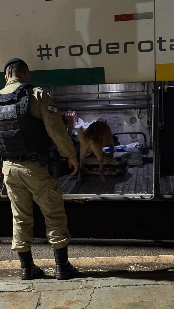 Na noite desta quarta-feira (25), a equipe do Canil do 11° Batalhão de Polícia Militar realizou uma ação preventiva e ostensiva com emprego de cão de faro, no âmbito das atividades de fiscalização e repressão ao tráfico de entorpecentes.