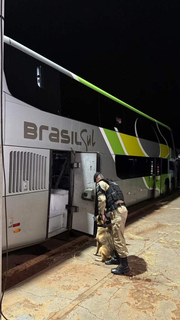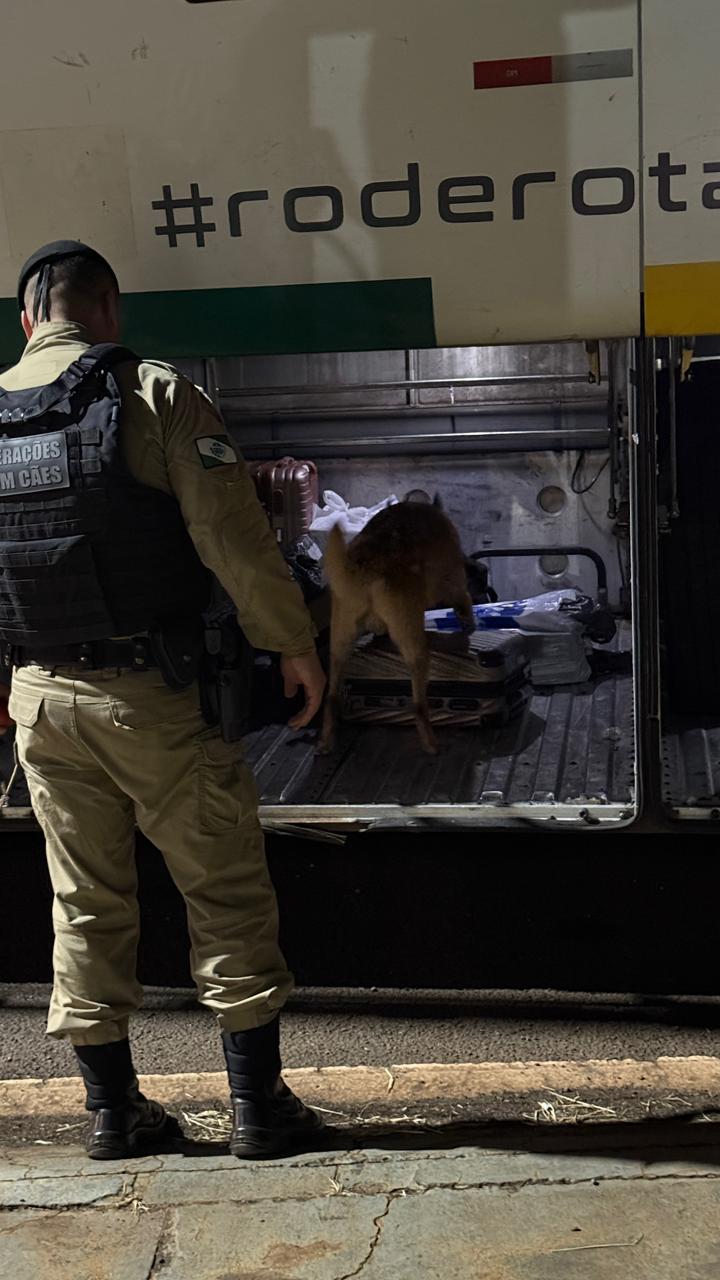 Durante a operação no posto da Polícia Rodoviária Estadual de Peabiru e na estação rodoviária de Campo Mourão, foram abordados quatro ônibus de turismo, pertencentes a diferentes empresas e linhas, sendo aplicado o cão policial K9 Stark para varredura no compartimento de bagagens e áreas internas dos veículos.