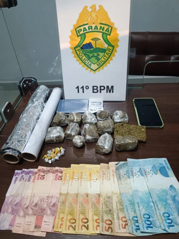 Na abordagem, o menor foi flagrado portando uma porção da droga e confessou que havia adquirido o entorpecente do segundo suspeito. Dentro da residência os policiais apreenderam uma pochete, 21 pedras de crack, totalizando aproximadamente 5 gramas, além de 340 gramas de maconha fracionada, uma balança de precisão, R$ 520,00 em dinheiro e um aparelho celular.