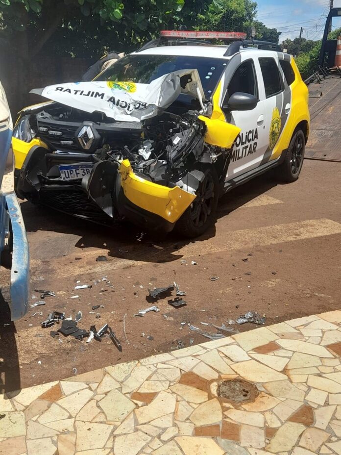 Uma perseguição policial a um motociclista na cidade de São Pedro do Ivaí terminou em um grave acidente envolvendo a viatura e um caminhão estacionado.
