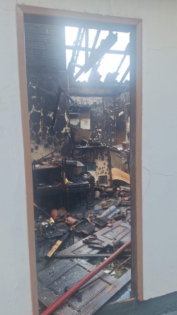 Uma residência de alvenaria foi destruída por um incêndio no início da tarde deste domingo, 1º, em Engenheiro Beltrão. O fato foi registrado no conjunto Domingos Machado.