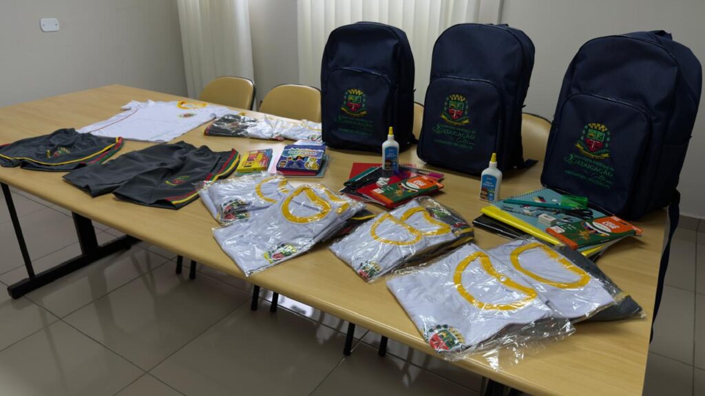 O kit é composto por uma mochila com materiais escolares e uniformes, a princípio, de verão. O uniforme de inverno também está sendo preparado para ser entregue em breve.