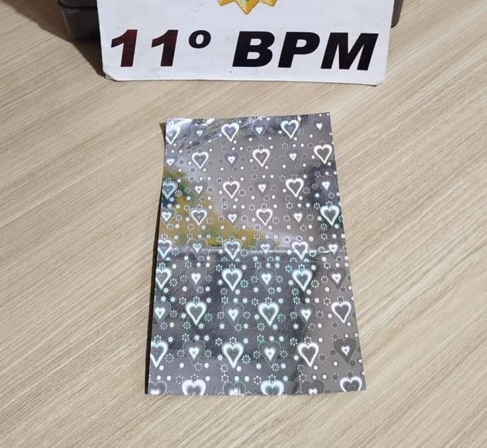 Durante as buscas, os policiais localizaram uma cartela contendo diversos papéis com características semelhantes à substância análoga ao LSD, escondida no interior do veículo. Questionado, o motorista assumiu a posse do entorpecente.