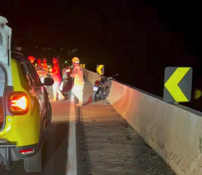 Segundo informações apuradas pela Polícia Rodoviária Estadual, a motocicleta bateu na traseira de um veículo que precisou reduzir bruscamente a velocidade para não atingir outra moto que seguia muito devagar à sua frente, com duas pessoas.