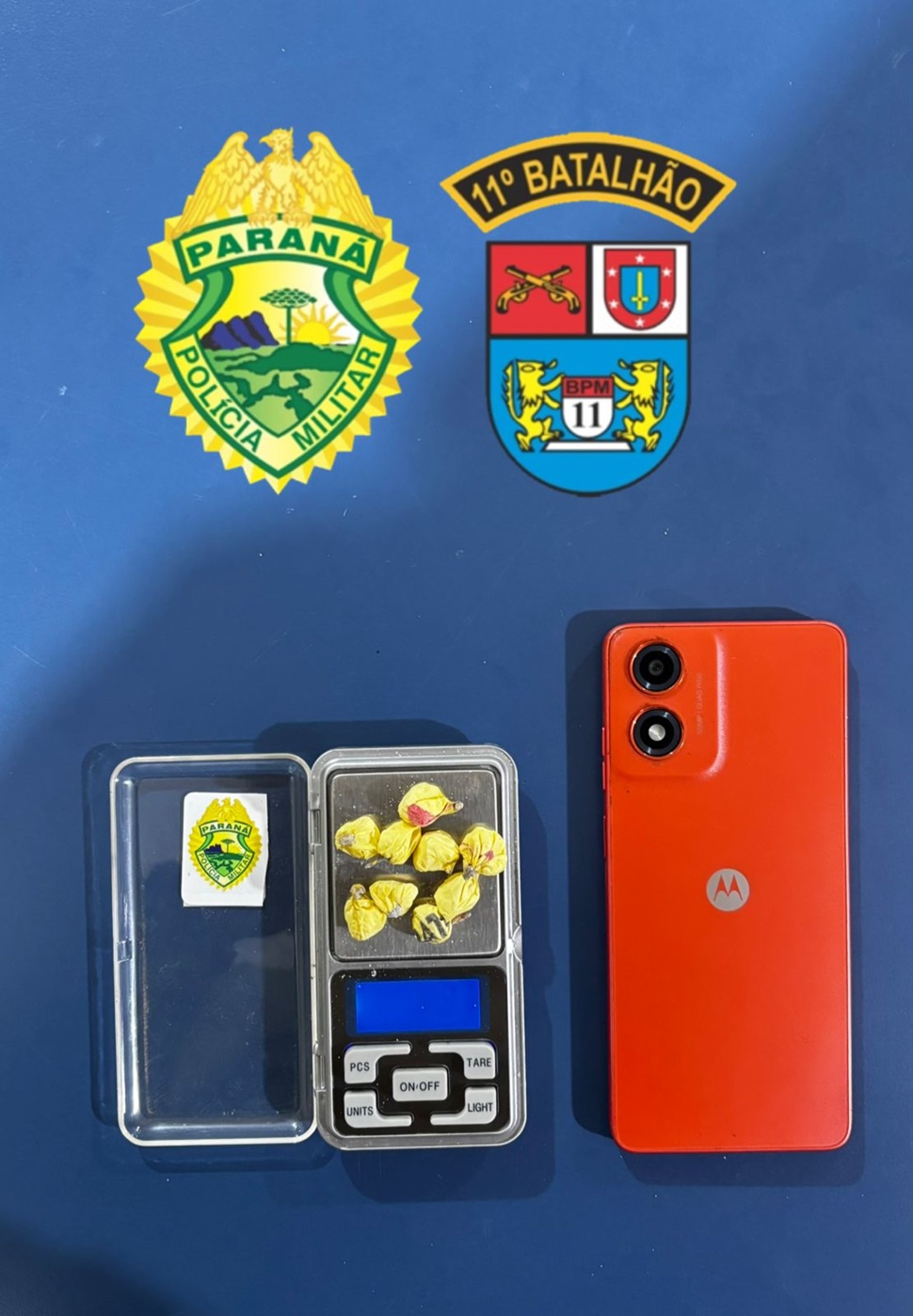 A Polícia Militar prendeu um homem por tráfico de drogas na tarde deste domingo (22), na Travessa Paineira, em Fênix. Durante patrulhamento ostensivo pela cidade, a equipe policial avistou uma motocicleta ocupada por um homem e uma mulher, ambos sem capacete.
