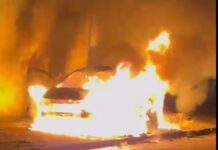 Após passar por um quebra-molas, ele percebeu o início do incêndio. As chamas se espalharam rapidamente e consumiram todo o veículo.