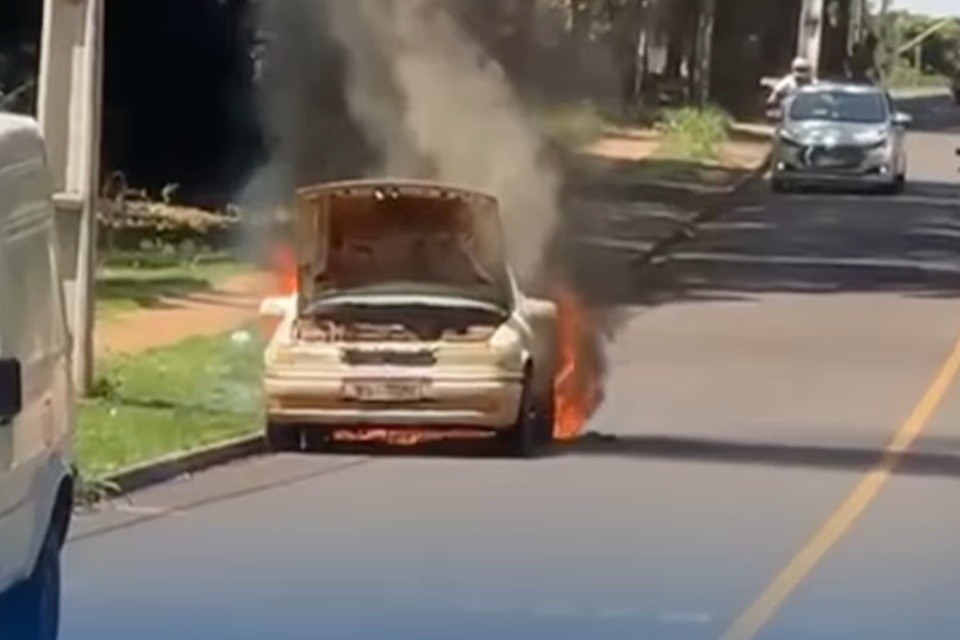 Um veículo Chevrolet Vectra foi destruído por um incêndio na manhã desta quinta-feira (5), na Rua Mônica, em Terra Boa.