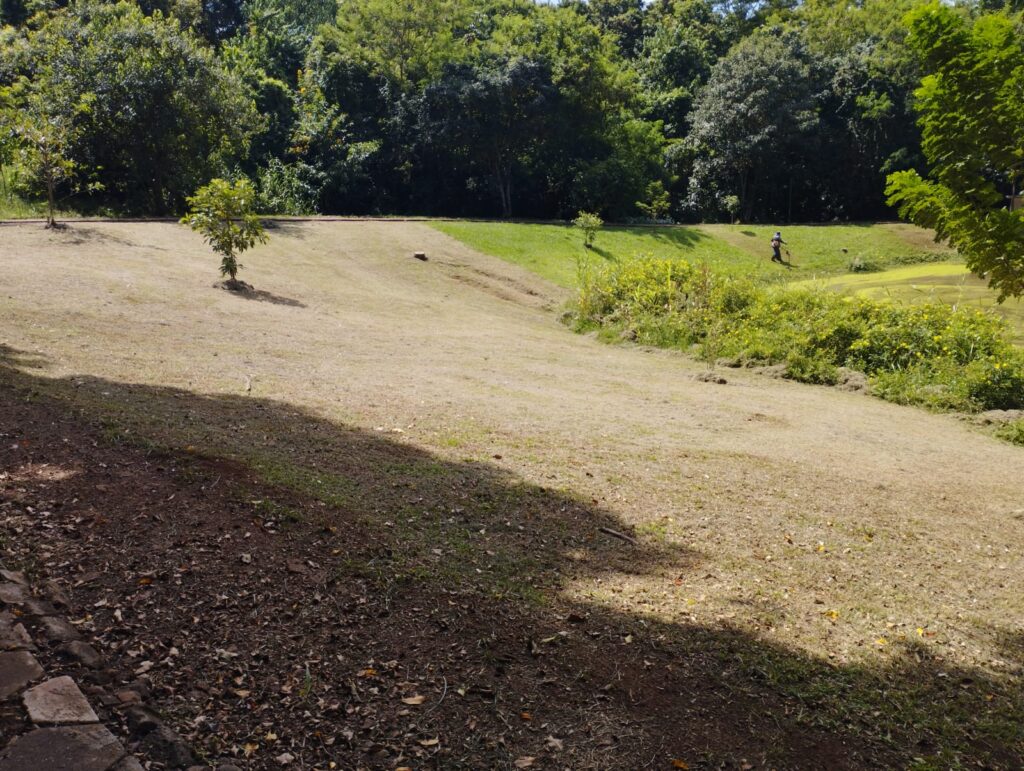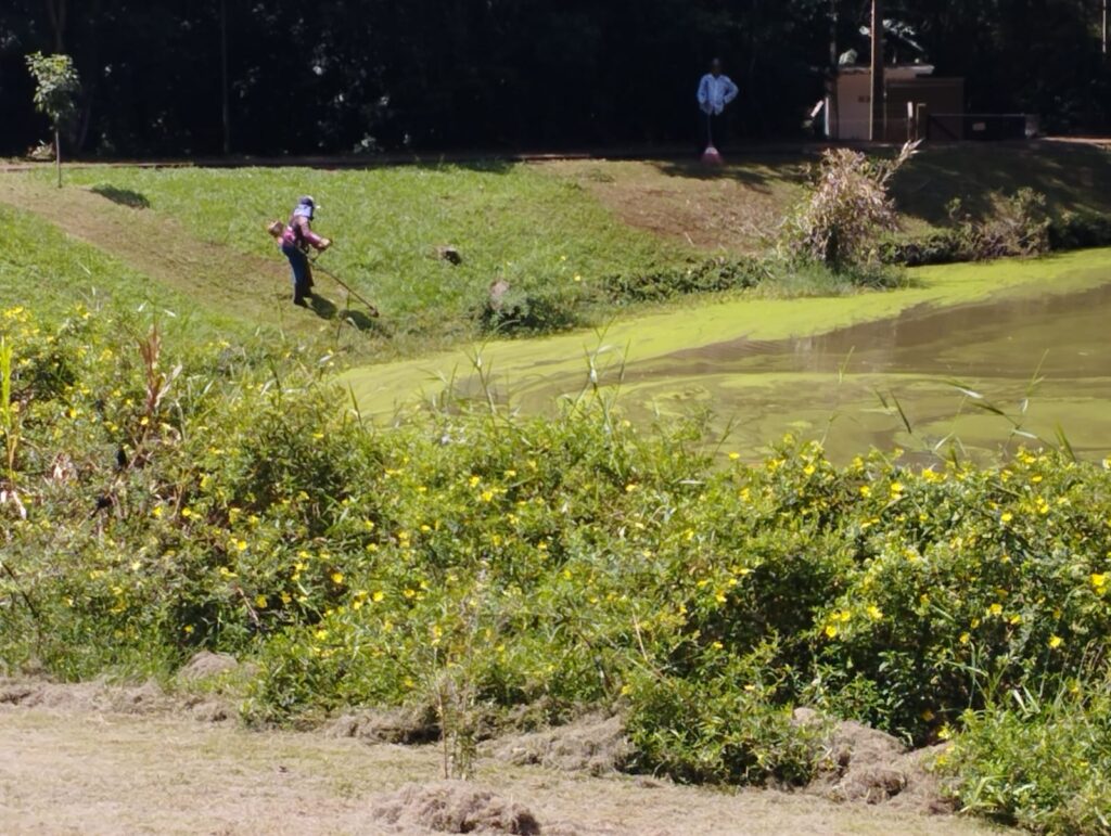 Com o período chuvoso, a vegetação cresce rapidamente exigindo um trabalho contínuo de manutenção e cuidados.
