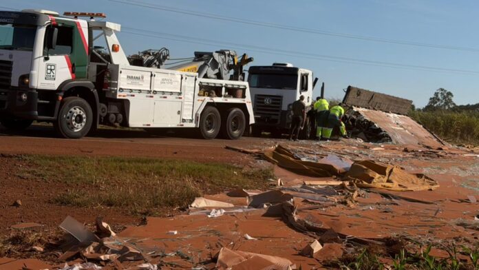 Um caminhão carregado com vidros envolveu-se em um acidente na manhã desta segunda-feira, 6, na rodovia PR-317, entre Engenheiro Beltrão e Ivailândia, na entrada do distrito de Sussuí.