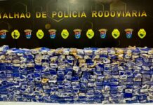 Diante da suspeita, foi realizada uma fiscalização minuciosa no compartimento de carga. Sob o material transportado, os policiais encontraram cerca de 700 caixas de cigarros de origem paraguaia ocultadas de forma deliberada.