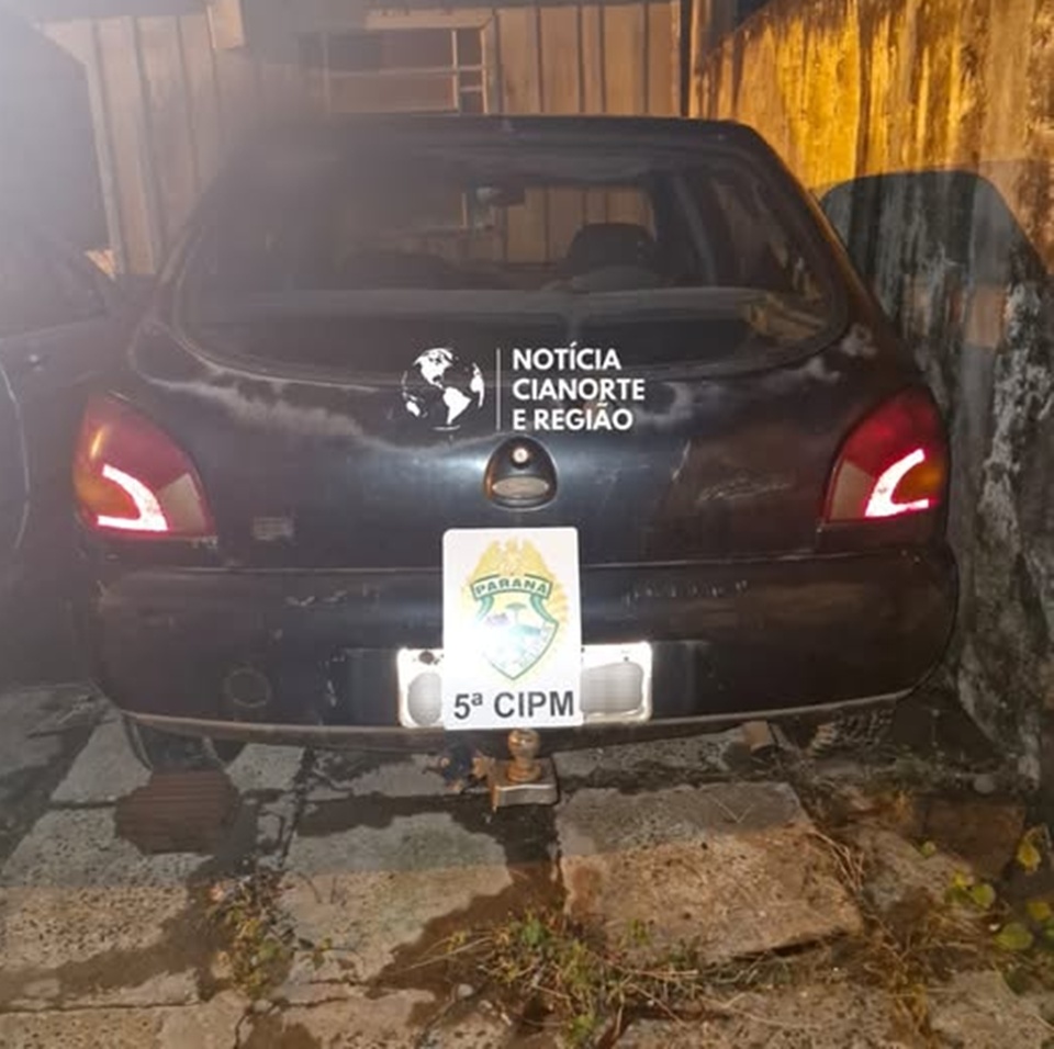 Durante o atendimento, um veículo Ford Fiesta, ano 1996, estacionou em frente à residência. O condutor informou ser familiar do suspeito e que estava no local para retirar pertences a pedido da vítima. Foi constatado que ele não possuía habilitação e que o automóvel apresentava débitos de licenciamento referentes ao ano de 2025.