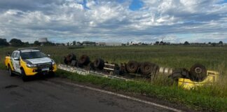 Motorista capota caminhão ao acessar o anel viário de Campo Mourão