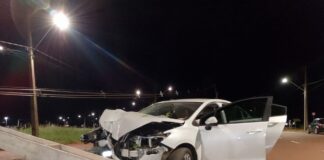 Colisão com poste deixa motorista ferida em Campo Mourão