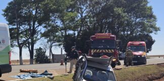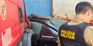 Carreta desgovernada atravessa rodovia e destrói carro em Campo Mourão