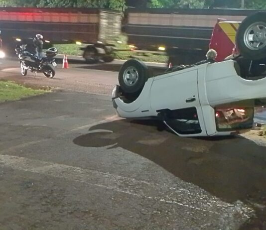 Caminhonete capota em acidente na Estrada Boiadeira, em Campo Mourão