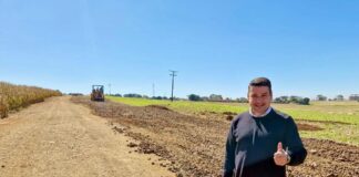 PREFEITO JÚNIOR GARBIM ACOMPANHA INÍCIO DA PAVIMENTAÇÃO RURAL NA ESTRADA SALTINHO
