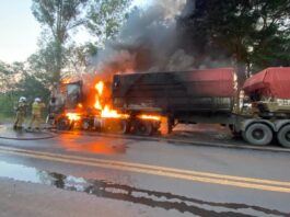 Veículo é destruído por incêndio na rodovia PR-487, em Campo Mourão