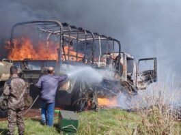 Ônibus que transportava romeiros pega fogo no trevo de Q. do...